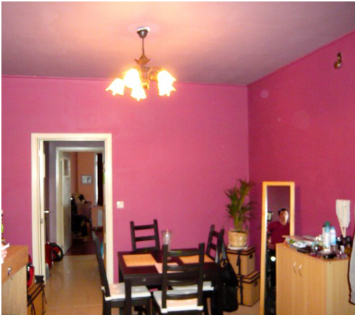 The apartment itself had new well isolated windows, and the electricity was checked and approved for 25 years. There wasn’t really a kitchen and the heating was a bit old and communal. The walls were all purple with even a grey ceiling. In other words anything but my style!