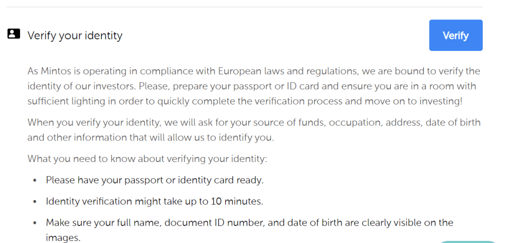 Then Mintos can start taking photos of you and your ID card to make sure your identity is verified.