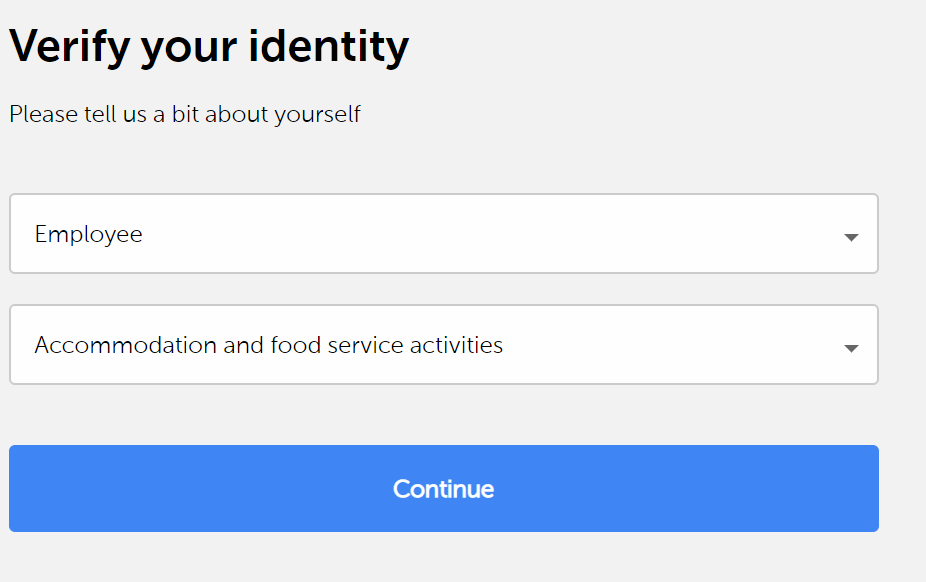 On the site just click the “Create an account” button to go trough the wizard for Registration. Have your passport ready before you start and you need to use a device with a camera such as a smartphone or laptop, you will need them at the ID verification screen.