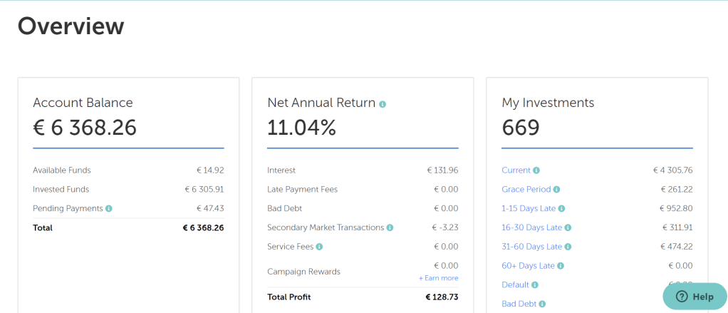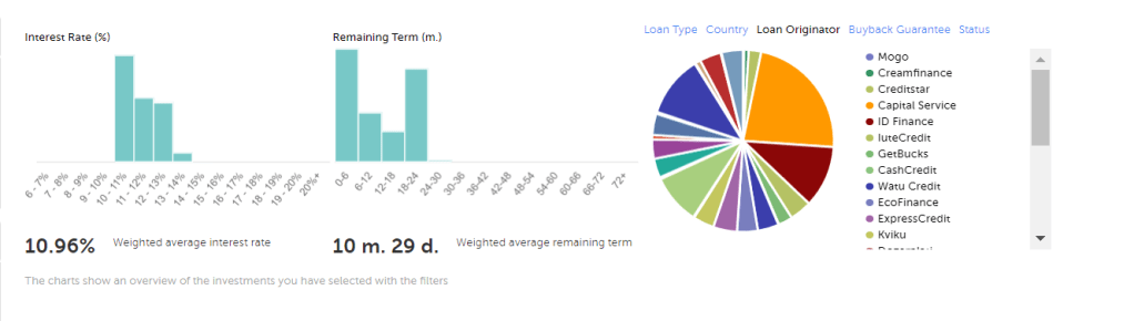 This gives a beautiful overview of all the investments you have,their term and their status. As you can see I do not have optimal diversification as I’m very exposed to Capital Service. This was because when I first started investing I went more for high returns rather then diversification. However this is something that will get solved in time.