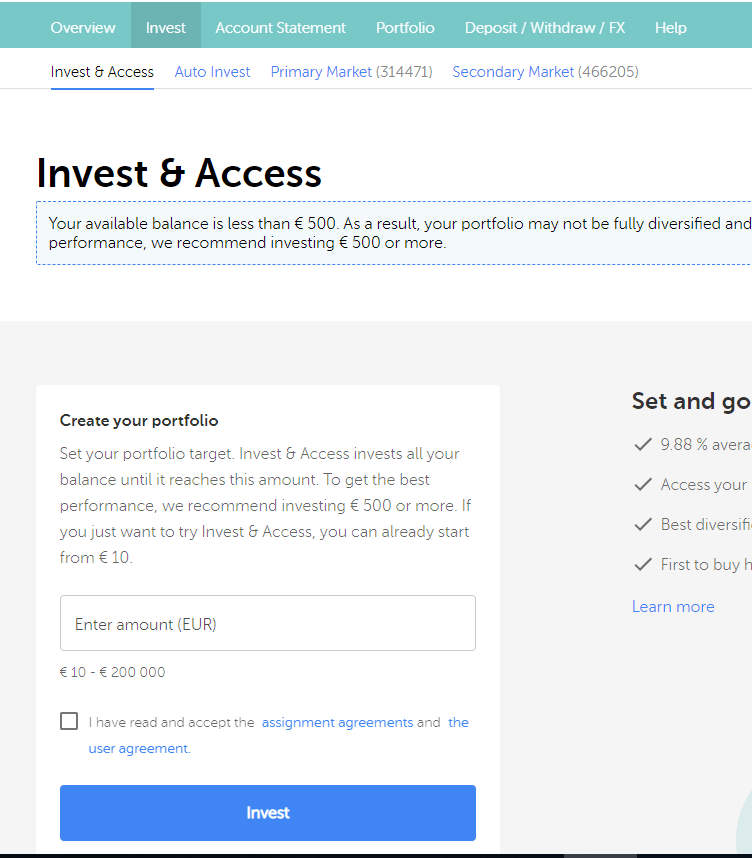 Because you can invest already from a small amount (10 EUR on primary market), that means that if you invest 500 EUR it is spread over 50 loans and different creditors.