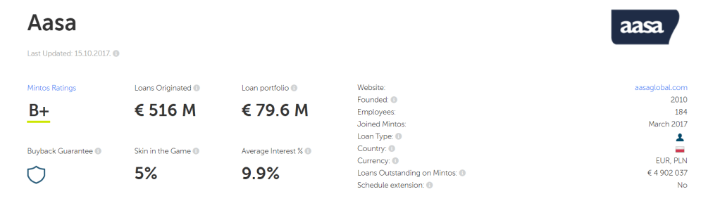 When you click on one of the loan originators you will see for example its rating. This is a rating that Mintos themselves give to these Originators.