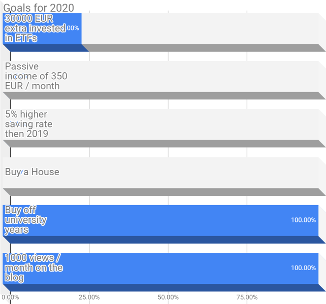 Invest 15000 EUR in ETFs (additionally)Has now become invest 30.000 extra in ETFs = 7500 EUR invested so far!Invest 15000 EUR in p2p (additionally)I will be leaving peer to peer- Earn a passive income of 350 EUR / month (by December) (Before taxes) = This will become pretty impossible since I am leaving peer to peer. I leave it onthere for now though