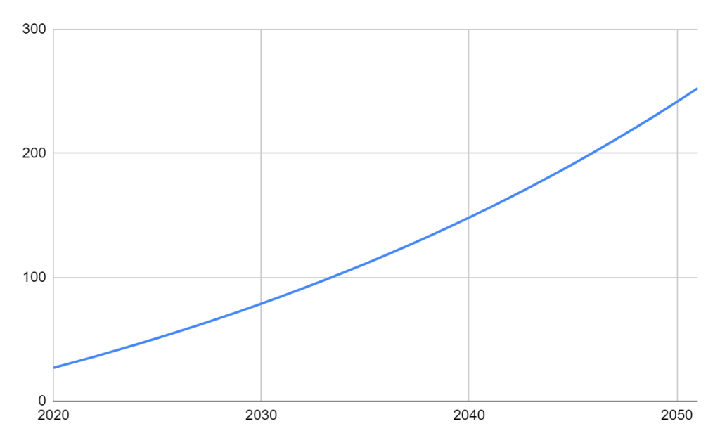 Before starting I just wanted to give a quick recap on what we call the 3.5% rule. Actually a lot of FIRE blogs will stick to the 4% rule, but the 3.5% rule is actually a lot safer. It assumes that the stock market will go up every year on average with 3.5% + the inflation rate, giving you enough money to survive every year. You will not have to worry about the stock market going up or down, as it usually does, but instead you just take 3.5% of whatever is in your portfolio every year and survive on that. That should be small enough to have an ever-lasting portfolio.