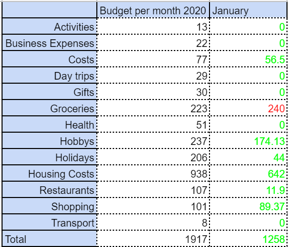Total Expenses for January = a RECORD BREAKING 1258. I could not have done this without Corona of course!