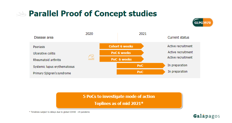 Clinical trials already started last year for Toleda and Galapagos is expected to report results on this mid 2021.