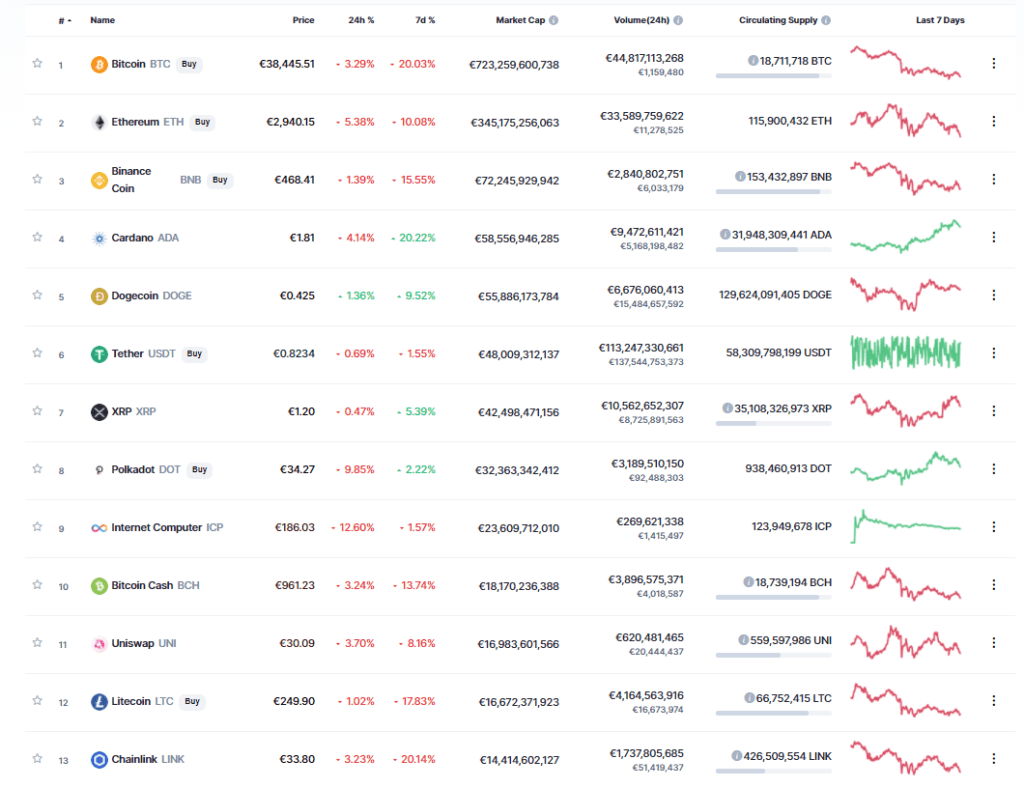 Somehow after Elon’s tweet I don’t see another rally happening soon. So then the question remains will another Coin overtake Bitcoin? Its hard to say. Doge seems funny enough to be the best candidate right now, but I would not dare to exclude that Elon would create his own Crypto currency. He certainly has the recourses to do it if he wanted to, although Facebook did try without much luck in the end.