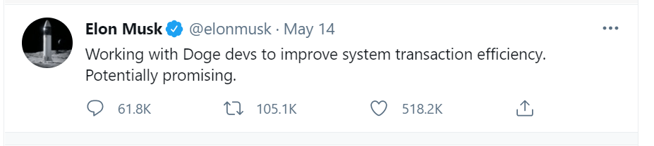 Elon also tweeted a bit later that Dodge would need a lot of improvements to get to where it needs to be. He also implied he could create his own coin, although he noted that using an existing coin would be much easier. Those tweets seem to have been removed for now and the only one remaining is this: