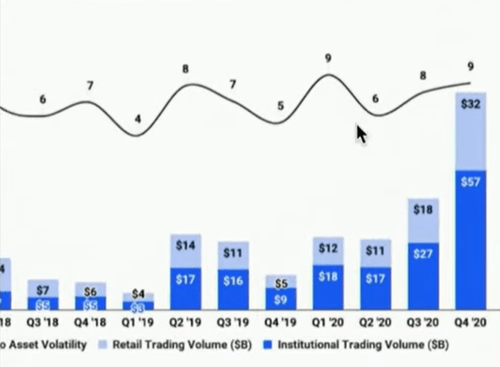 Looking at the bellow chart from Coinbase it does seem like institutional investors have discovered Crypto (dark blue is institutional):
