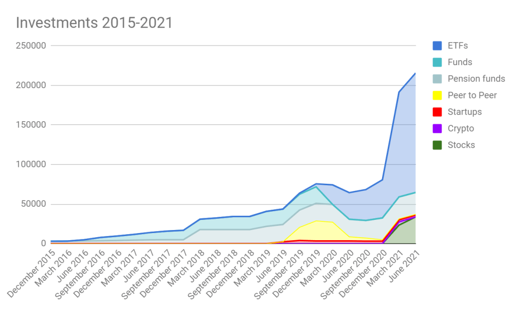 My Portfolio has increased to 216357 EUR (+11774). I invested about 1000 EUR additionally but the major growth of my portfolio came from compound interest. I plan to invest another 2000 – 3000 EUR in July.