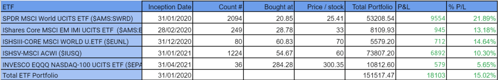 - 6.14% gain for my stock/ETF portfolio this month, translating 10639 EUR gain