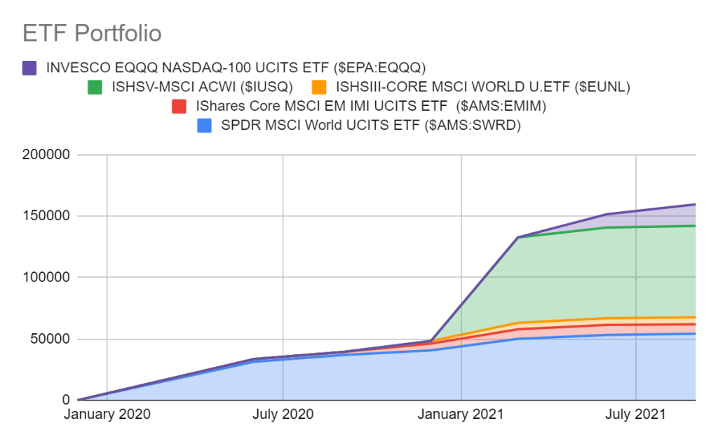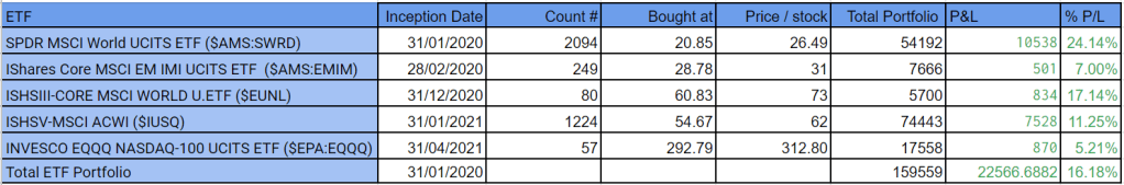 With the income of the stocks I bought additional EQQQ shares, which is an ETF tracking the Nasdaq. Its the only ETF that outperforms the SP500, and its focused on Tech so it is similar to my growth stock portfolio.