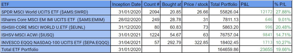 - My ETF & stock portfolio continued to compound with about 3.86% this month. This is quite a large amount on my portfolio.