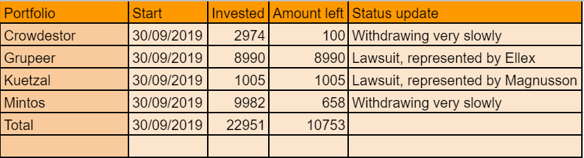 Nothing new on CrowdEstor. I am just waiting for what will happen with my last 100 EUR investment there. I have already defaulted this investment in my portfolio.