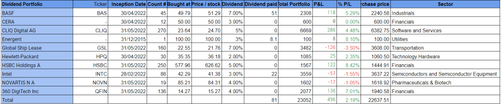 - On the other hand my dividend Portfolio is up 2%, even if its only about 10% of my portfolio its a good sign!