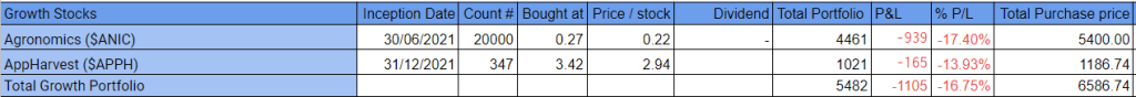 I kept AppHarvest because they have a good revenue, and I also kept Agronomics but I did trim the position a bit.