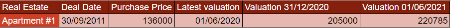 I currently owe one apartment that I purchased in 2010 for 136.000. I got it re-estimated in 2020 at it was valued at 185.000 EUR. I did a re-evaluation of my apartment and I personally value it at 205000 EUR.