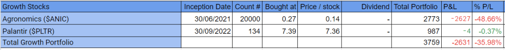 My Growth Portfolio went down about 2% this month, so similar as my dividend portfolio except I wont get any dividends 😦