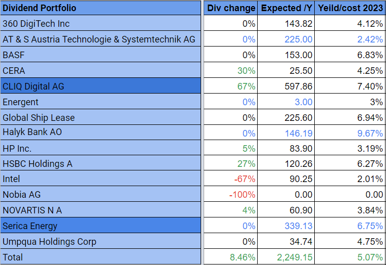 So a few made dividend cuts but the weighted increase for 2023 so far is a whopping 8.46%!!!