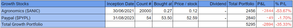 My Growth Portfolio continued to Perform terrible. Paypal did broke out from the low point and might still have a good year afterall!
