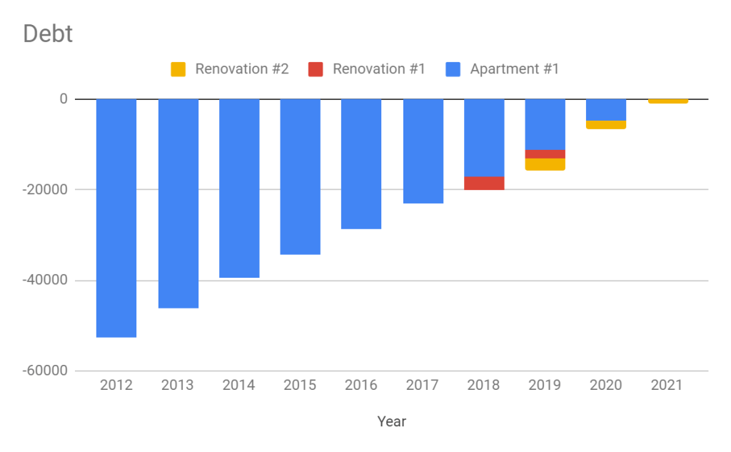 - The debt I have is pretty much only a loan on my first apartment (details bellow)